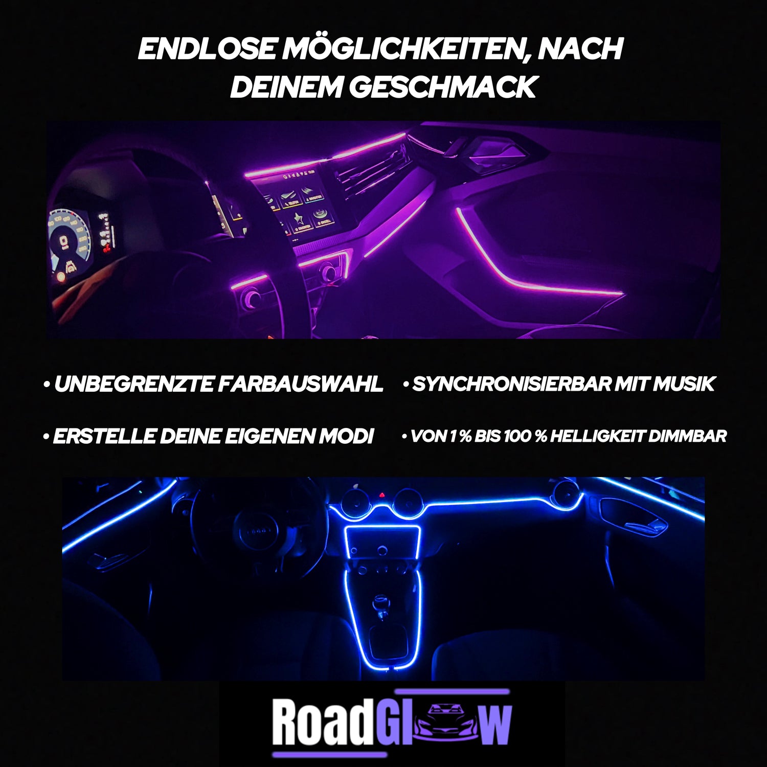 Die RoadGlow™ LEDs lassen sich schnell installieren – entweder in den Fugen deines Autos einbringen oder einfach ankleben. Die Stromversorgung erfolgt über den Zigarettenanzünder oder die Batterie. Nach dem Anschluss kannst du die Beleuchtung bequem per App oder Fernbedienung steuern und nach Wunsch anpassen.